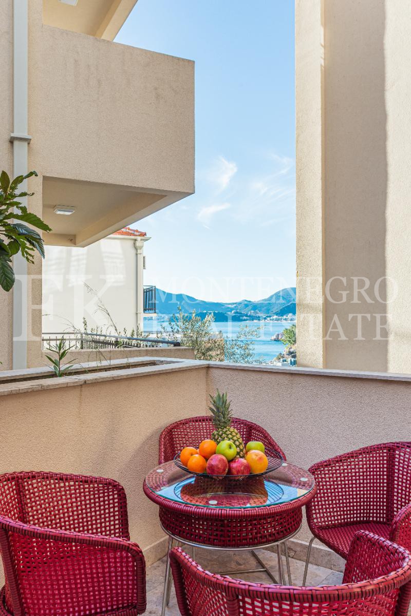 Excellent one bedroom apartment in Budva-Przno, 87m2, with own parking space, only 4 minutes’ walk to the beach, in Montenegro.