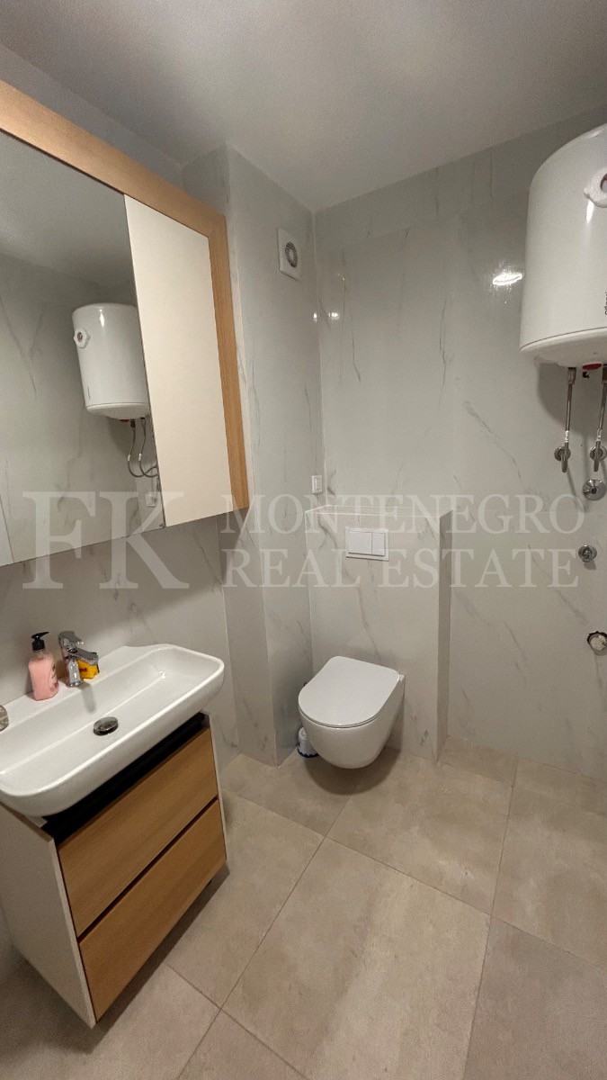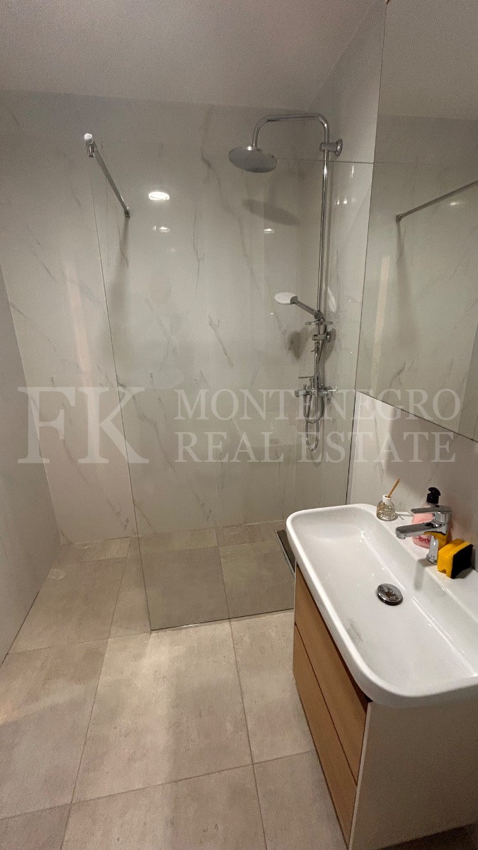This stylish, newly built apartment is located in the popular coastal area of Budva-Becici, just a 5-minute walk from the beach. It’s situated on the eighth floor of a modern residential complex and offers a side sea view, including a glimpse of the famous island of Sveti Stefan. The apartment is partially furnished.