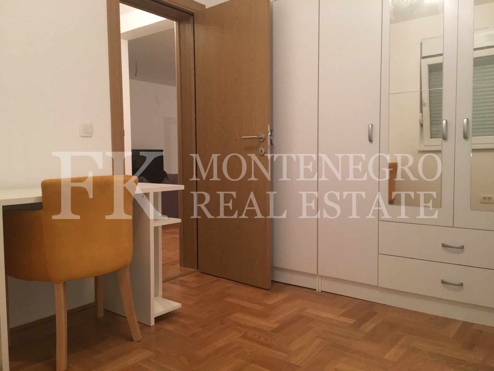 It has two bedrooms, living room with kitchen area, bathroom, guest toilette and balcony.