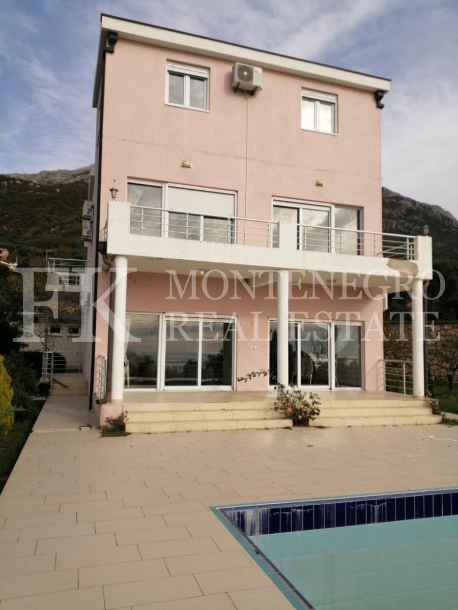*Beautiful three-storey house, 227m2, in Dobra Voda, with sea view, garage, swimming pool and large garden 2.039m2, in Montenegro.