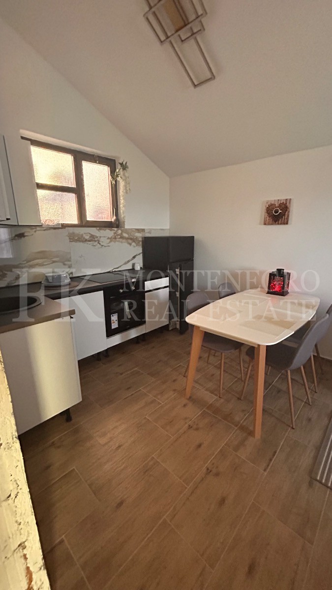 This charming, newly renovated house is located on an elevated position above the popular beaches of Mali and Veliki Pijesak in Dobra Voda – just a few minutes' walk from the sea. Set on a 299 m² plot, it offers a stunning view of the open sea, a peaceful environment, and versatile living options.