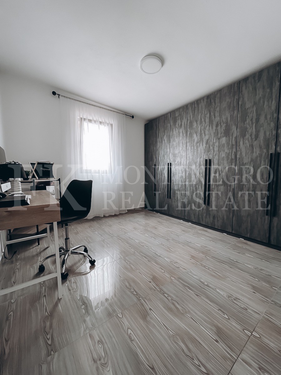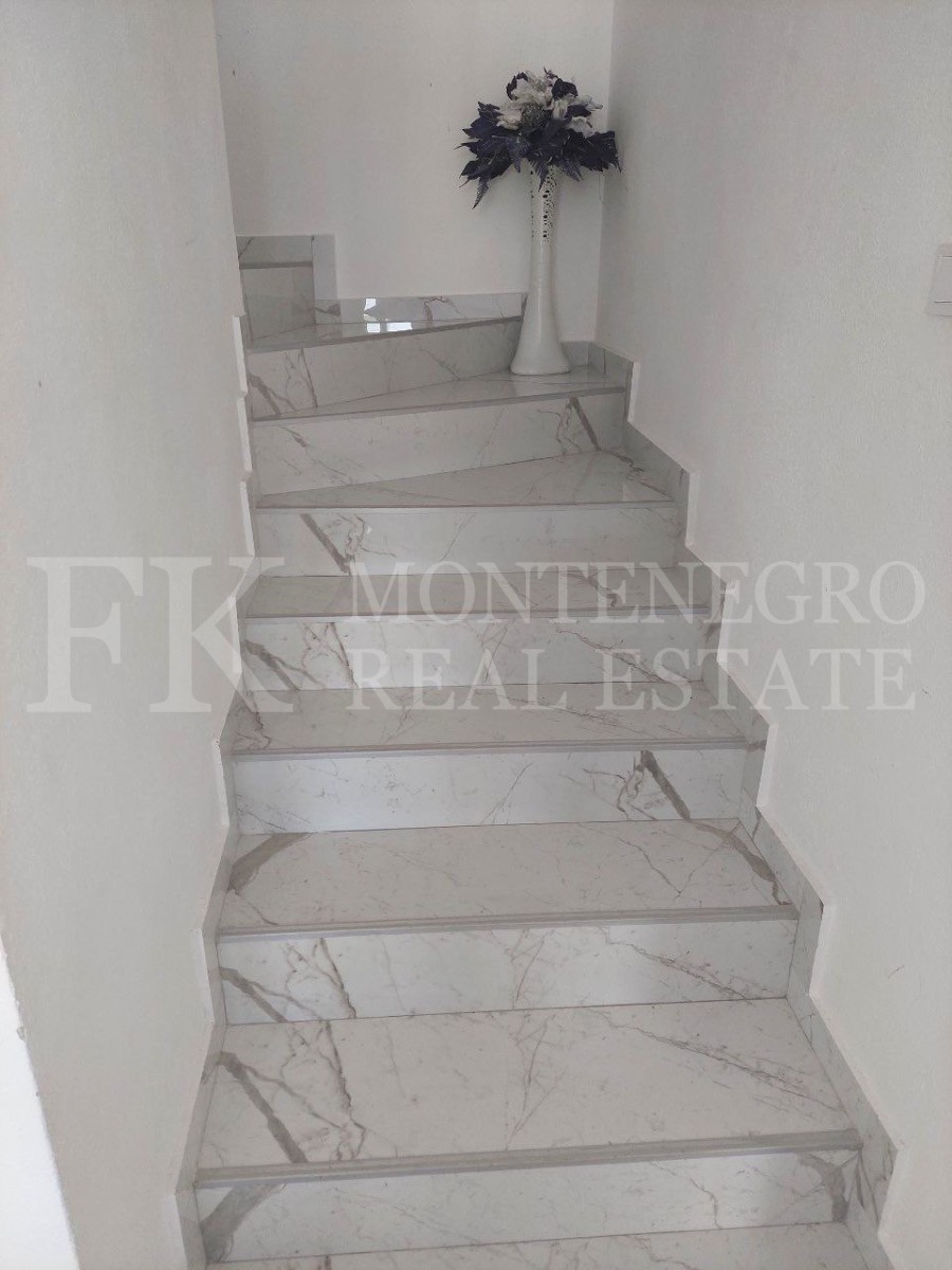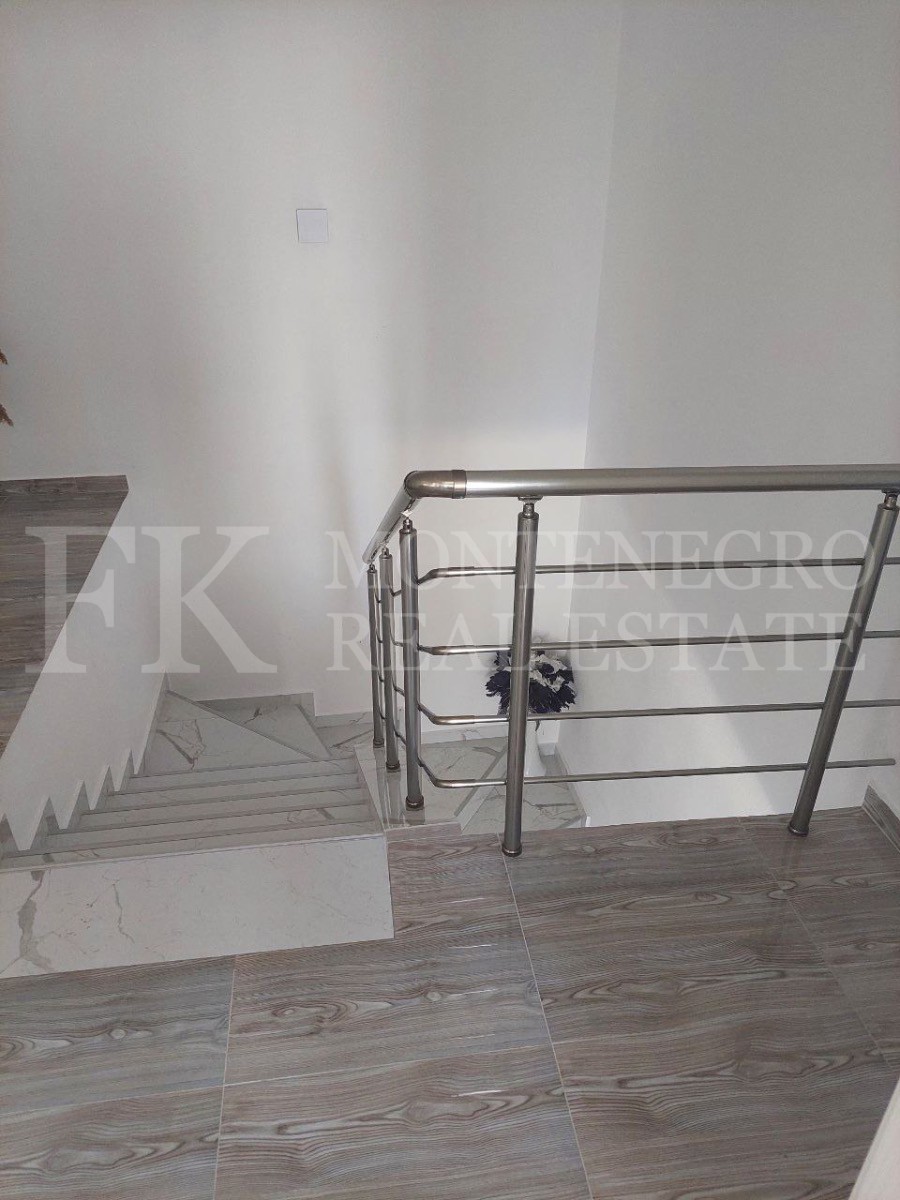 This new house is located about 1,5 km from the suburb of the city Bar in direction to Dobra Voda. The modern house has two floors, a paved courtyard entrance, fenced area, a small garden, city water and view to the suburbs of Bar and surrounding landscape. It is possible to build a garage on the plot. The Legalization for this house is already submitted to the municipality Bar. The distance to the sea is about 4,5 km.