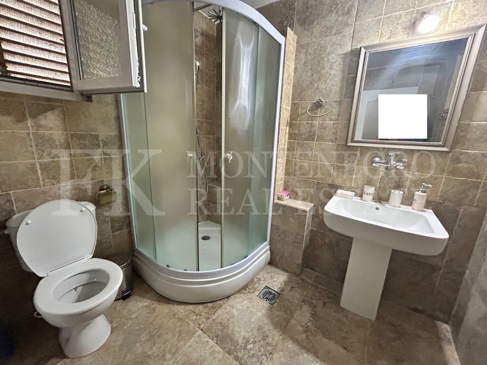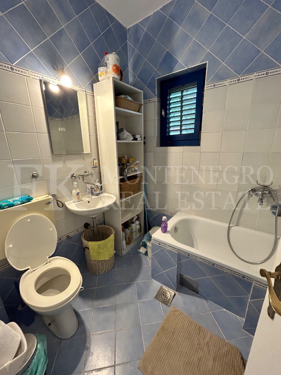 - Large terrace (approx. 30 m²) with panoramic views of the sea, island, and Budva