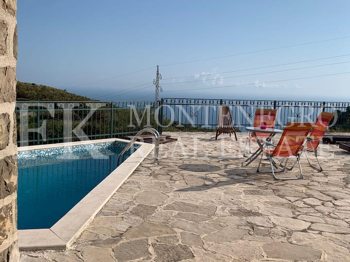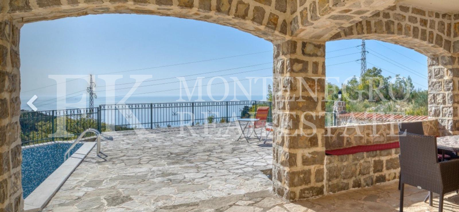 Luxury villa in the traditional Pashtrovsky style, 466m2, above Petrovac in the village of Krushevica, with fantastic sea view, in Montenegro.